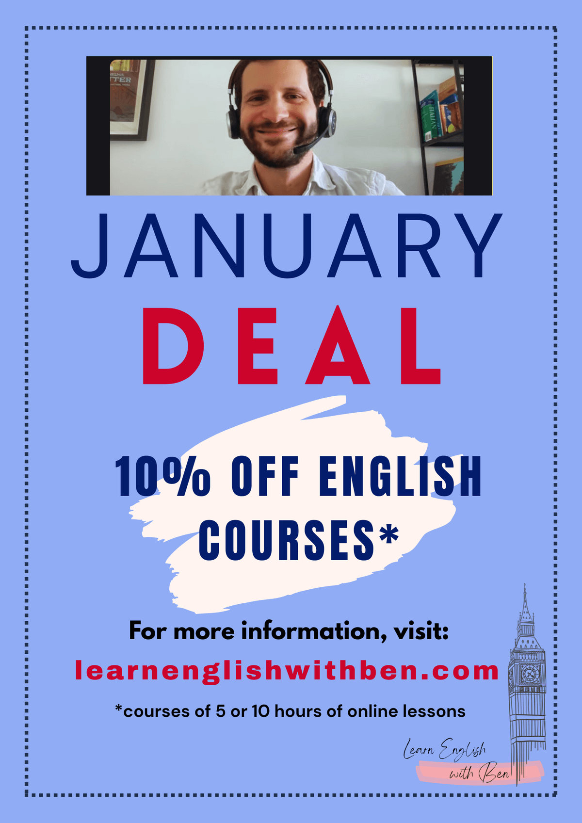 Book an English course in January and get 10% off! Send me a message through the form below or email me: learnenglishwithben88@gmail.com